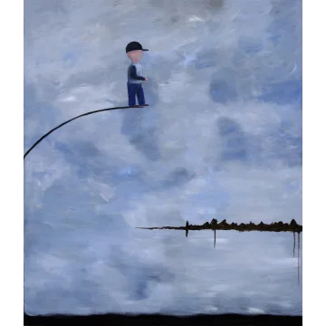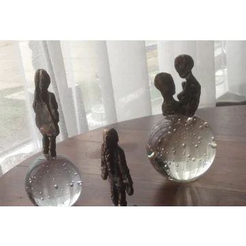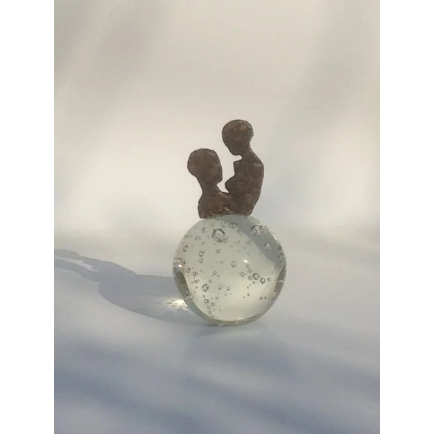 Silhouette. small bronze statue 7x8 cm stands on a glass sphere. In backlight, the statue is monumental. Glass sphere has interaction.